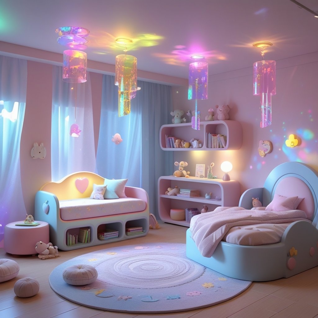 Lichtspel ontstaat als de zon door verschillende kleuren folie schijnt. Overdag verandert het effect, dat brengt leven in de ruimte.
